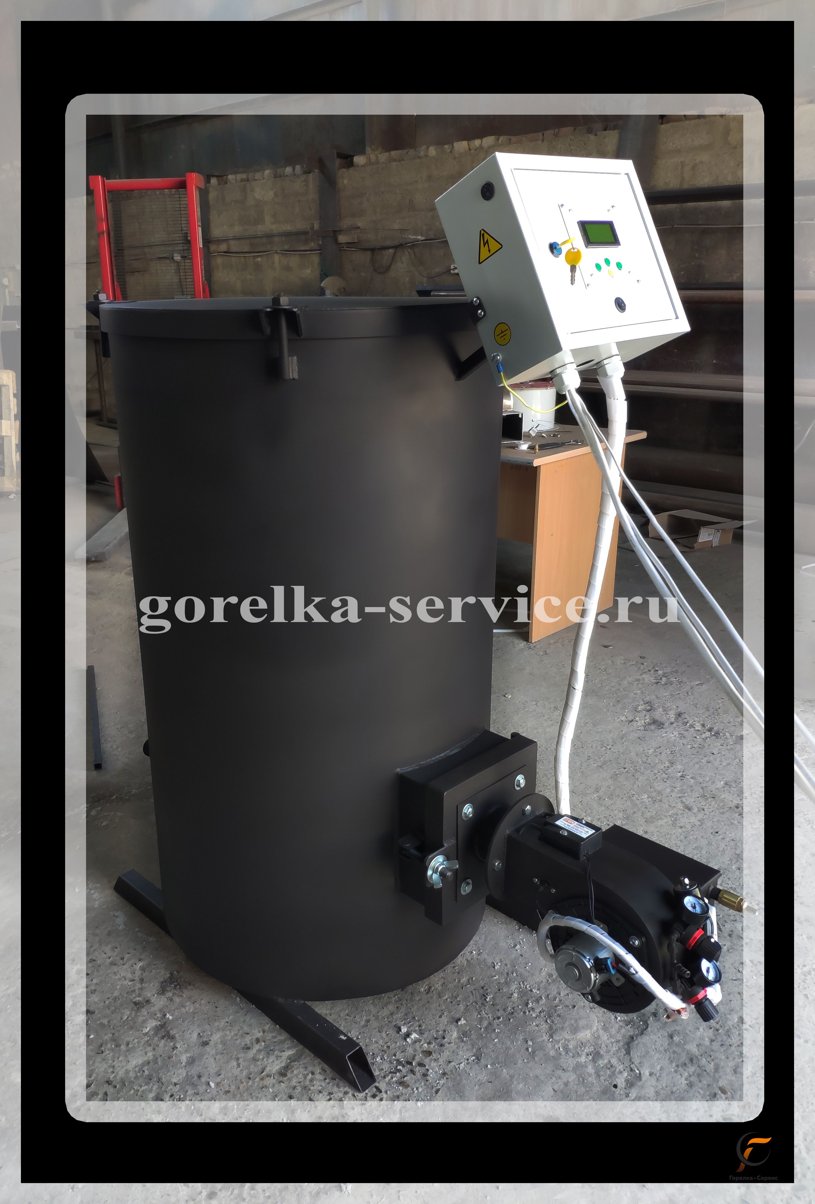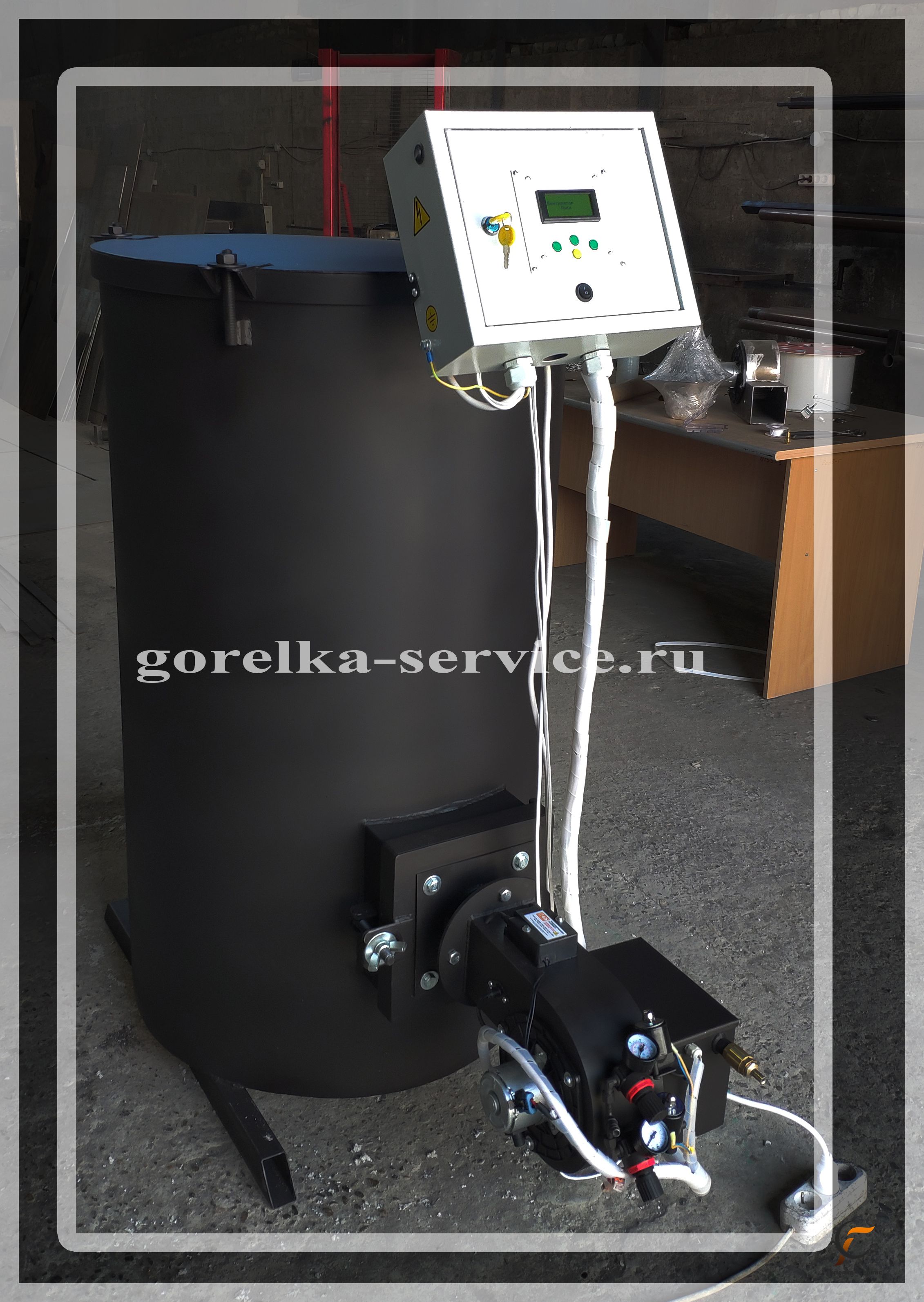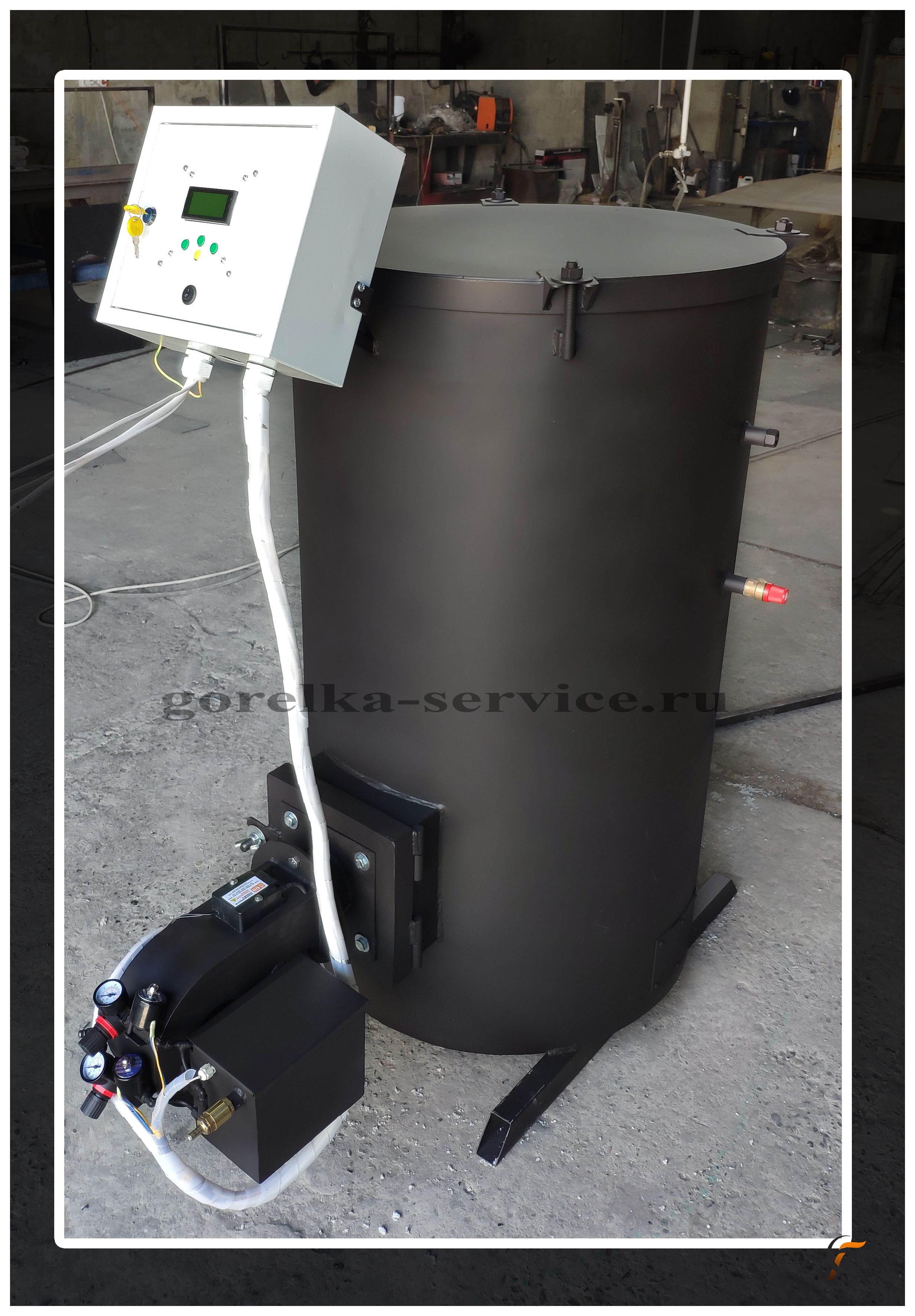 Панель управления: термостат блокировочный, термостат рабочий, датчик температуры, выключатель, маслонасос погружной (адаптирован под горловину 200л бочки), блок автоматики.