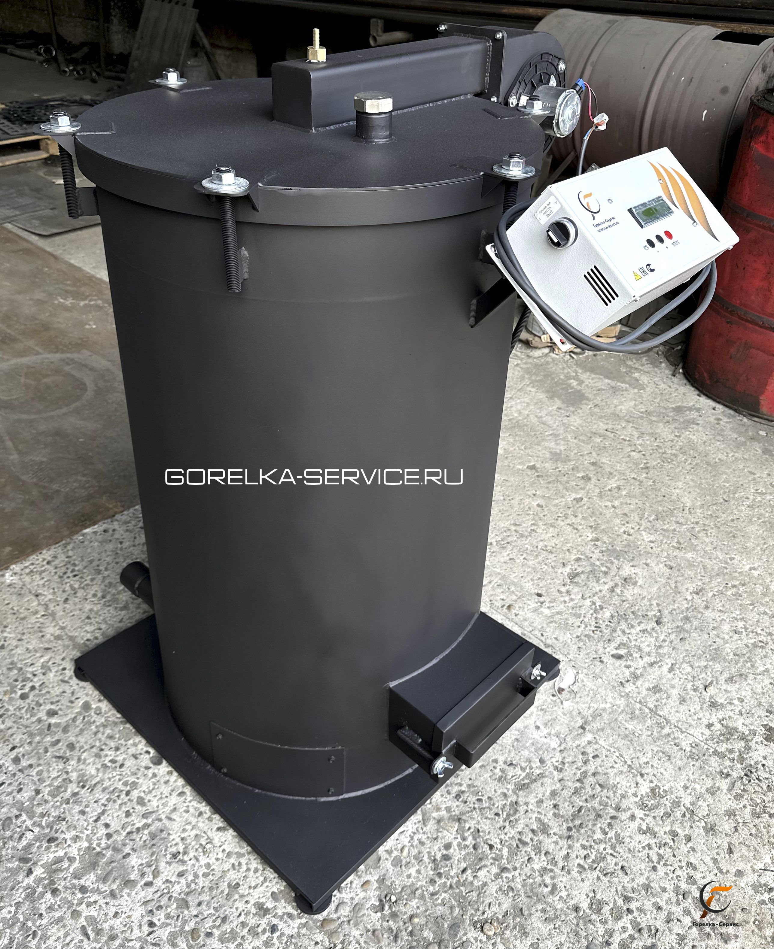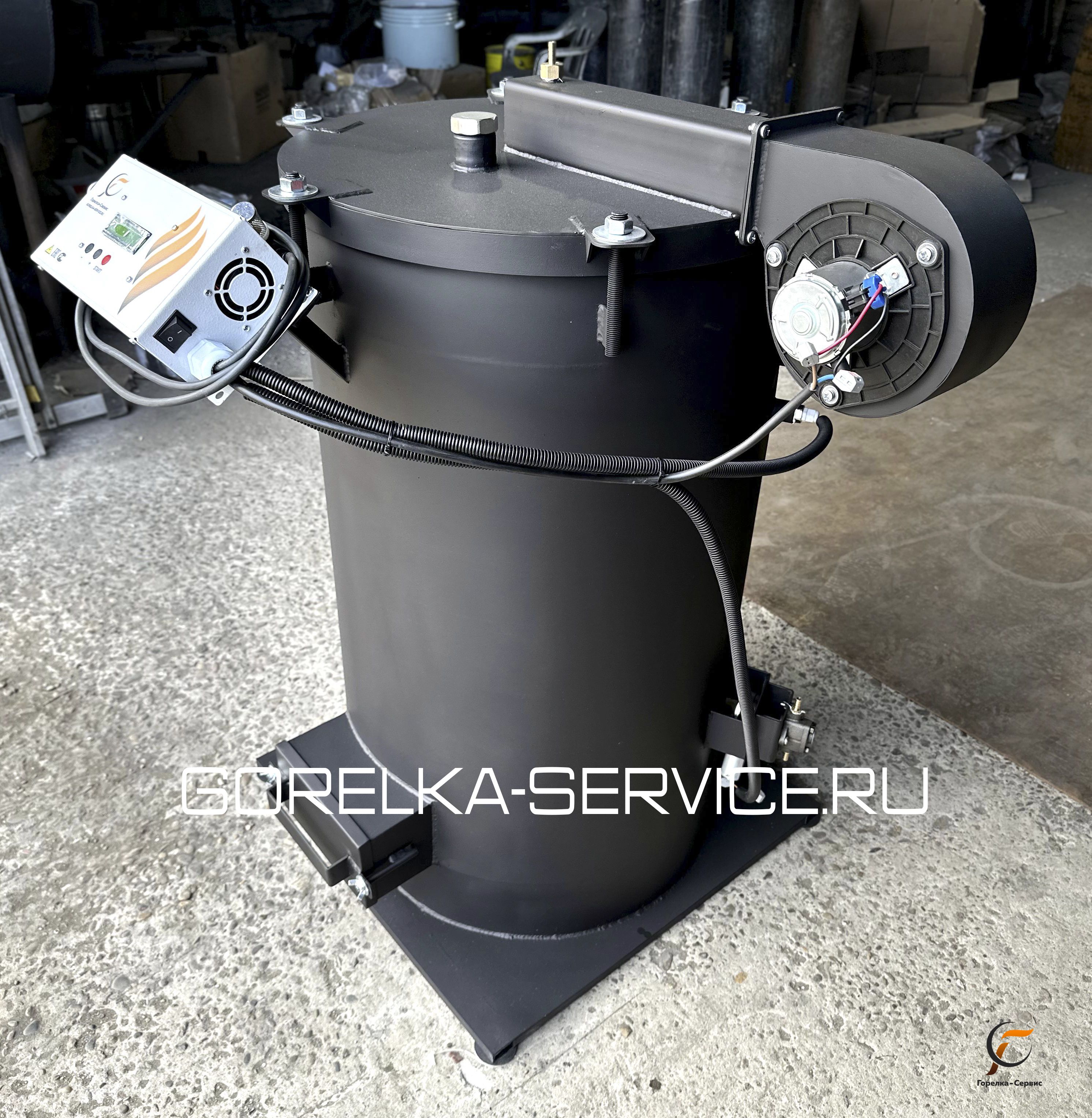 В комплектацию входит : теплообменник, блок управления, вентилятор надува, насос подачи масла, инструкция.
