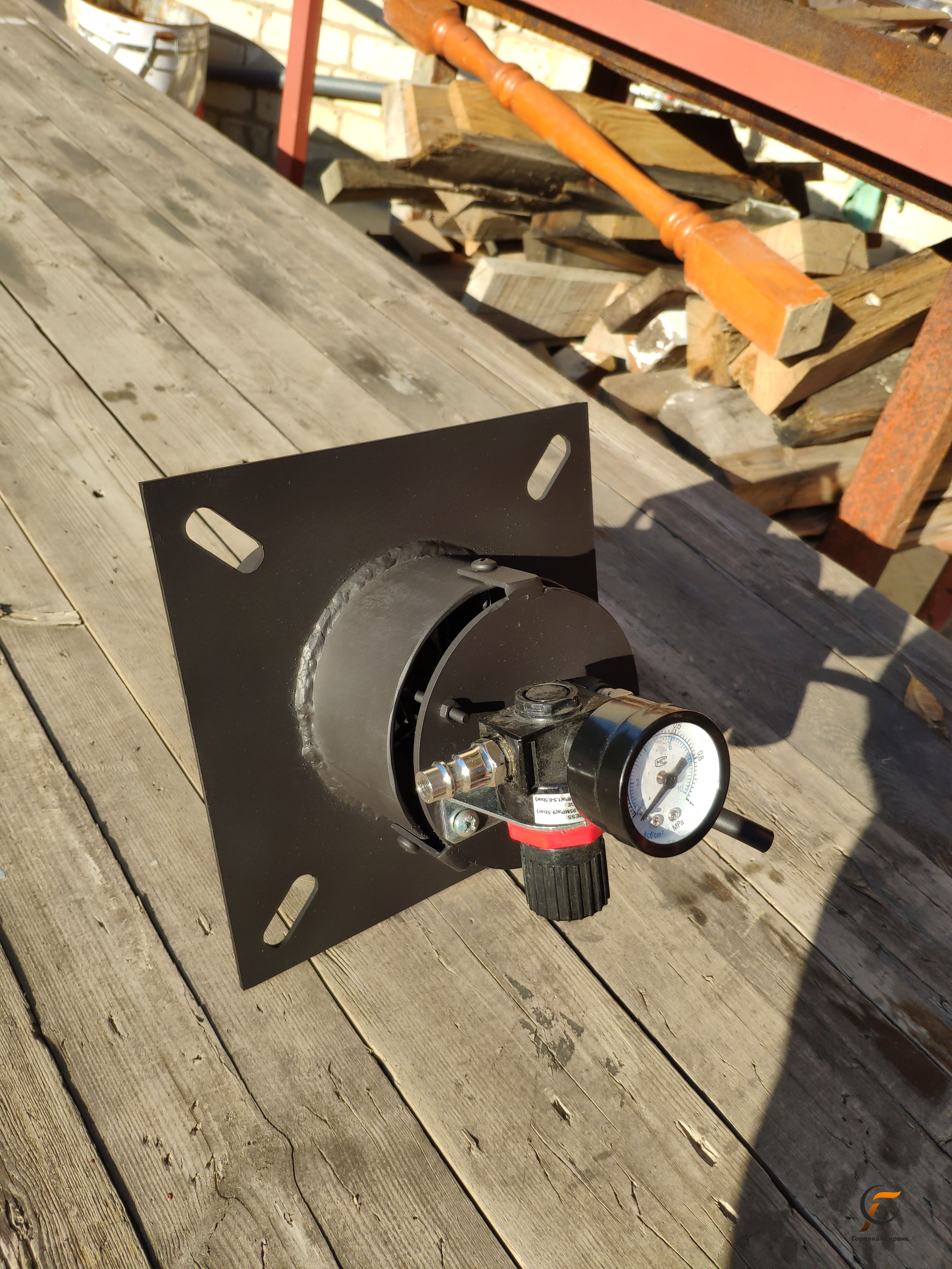 Узел регуляции снабжен манометром, удобными регуляторами подачи топлива и сжатого воздуха и разъёмами для подключения.